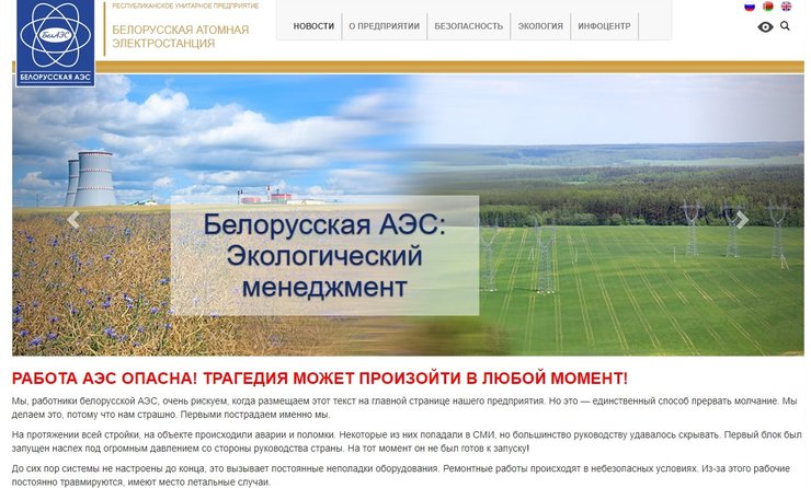 "Робота АЕС небезпечна! Трагедія може статися в будь-який момент", — свідчить оголошення на сайті БелАЕС.