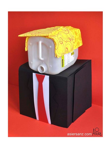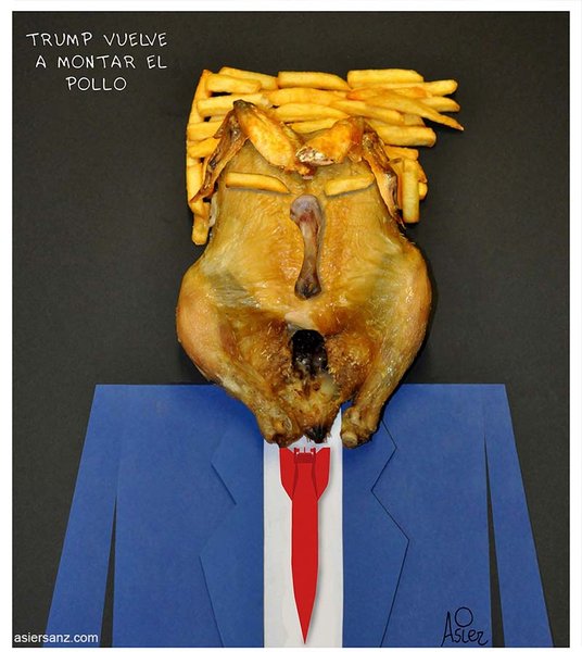Першу популярність Сансу приніс все той же Дональд Трамп. Карикатура на політика, виконана в техніці колажу з бананом, свинячою ковбасою чорізо і вареною ковбасою мортаделла, привернула увагу громадськості. Робота іспанця була виставлена в Лондонському музеї дизайну (2018), ставши першим вірусним колажем у світі.