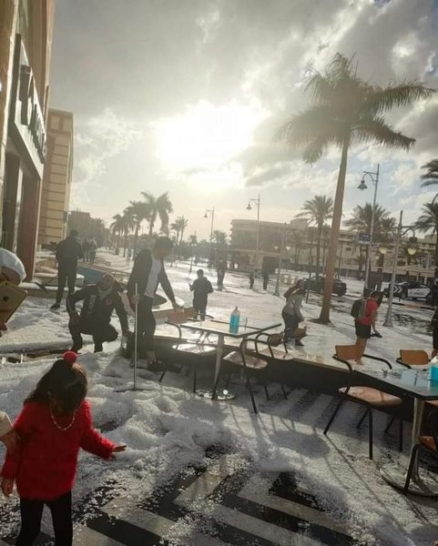 Першого січня 2022 року в Єгипті снігопад із градом тривав кілька годин. Велика кількість опадів ускладнила пересування місцевими дорогами. Про це повідомляє Egypt Today.