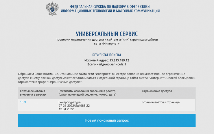 Журналісти видання заявили, що їх про це ніхто не попереджав, про блокування вони дізналися через перевірку телеграм-ботом, а також через ресурс Роскомнагляду, який підтвердив, що IP-адреса видання заблокована за рішенням російської Генпрокуратори.