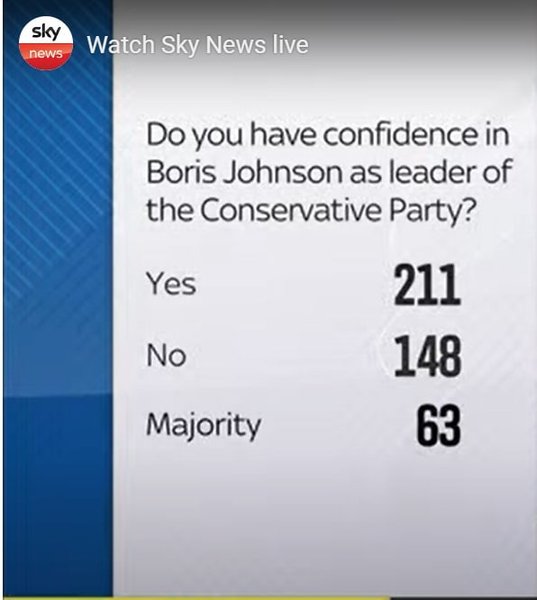 За відставку Джонсона проголосували 148, проти — 211. Щоб зберегти посаду, Джонсон мав отримати підтримку щонайменше 180 представників Консервативної партії.