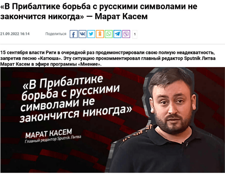 Служба держбезпеки Латвії тривалий час стежила за редактором "Sputnik Литва" Маратом Касемом. Його ресурс регулярно дискредитував діяльність країни та її союзників.