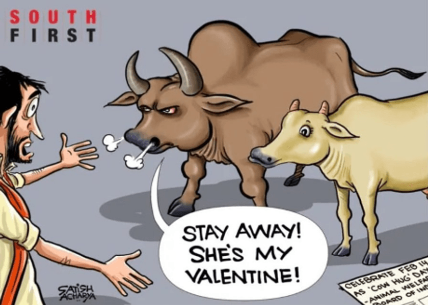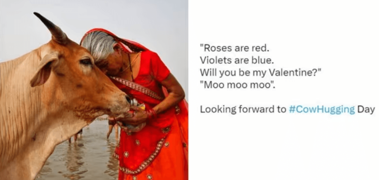 6 лютого Рада з благополуччя тварин Індії опублікувала заяву, в якій 14 лютого оголошувалося "Днем коров'ячих обіймів". Про це повідомив американський телеканал CNN.
