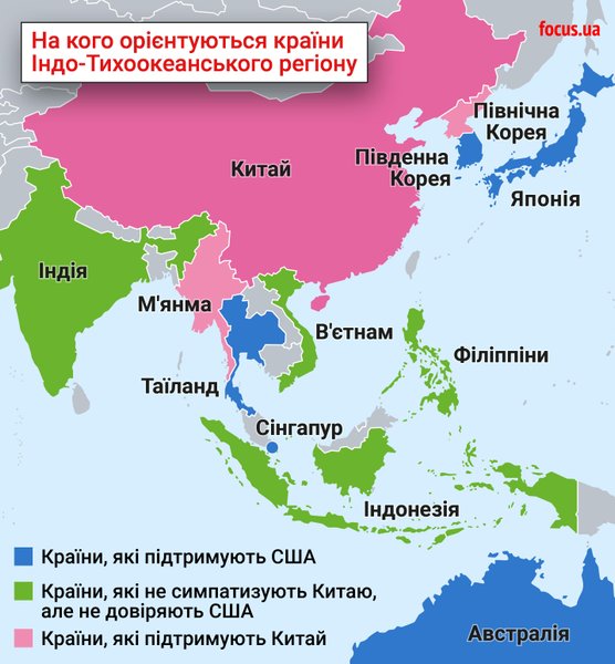 Цікаво, що США так і не створили в Індо-Тихоокеанському регіоні чогось на кшталт НАТО. Вашингтон в ньому представлений мереживом двосторонніх союзів з Японією, Південною Кореєю, Сінгапуром, Новою Зеландією.