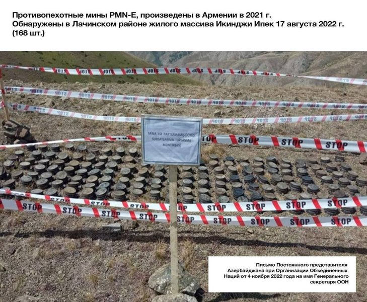 Хоча Азербайджан восени 2020 року зумів звільнити основну частину своєї суверенної території в результаті Другої Карабахської війни, вірменська сторона під прикриттям військового контингенту РФ, продовжує мінування цих земель. Як зазначав глава азербайджанського МЗС Джейхун Байрамов у листі на ім'я Генсека ООН, Вірменія незаконно доставляє до Азербайджану та встановлює у масовому порядку на його території нові міни. Лист супроводжувався документальними доказами того, що тисячі нещодавно виявлених у Карабаху мін зроблено у Вірменії у 2021 р. – тобто вже після того, як за підсумками війни офіційний Єреван підписав зобов'язання повністю припинити вогонь та усі військові дії.