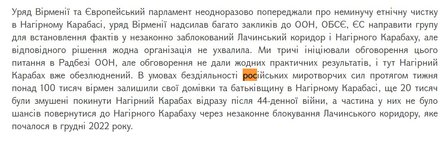 Водночас Росія, яка мала б якось вплинути на ситуацію згідно з договором про колективну безпеку (ОДКБ), не зробила жодного руху на допомогу вірменам і Вірменії, засвідчили заяви російської влади.