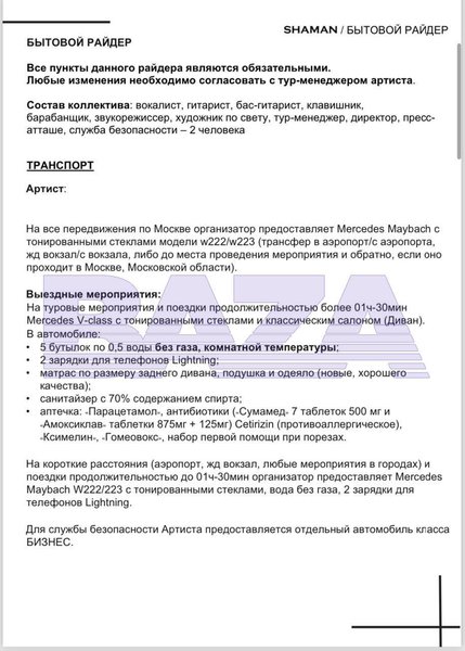 Непатріотичний Mercedes: опубліковано райдер "співака-путініста" Шамана (фото)