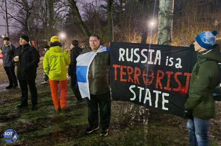 Журналісти опублікували фото стихійного мітингу росіян в естонській столиці Талліні.