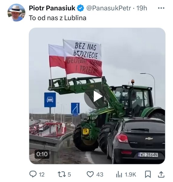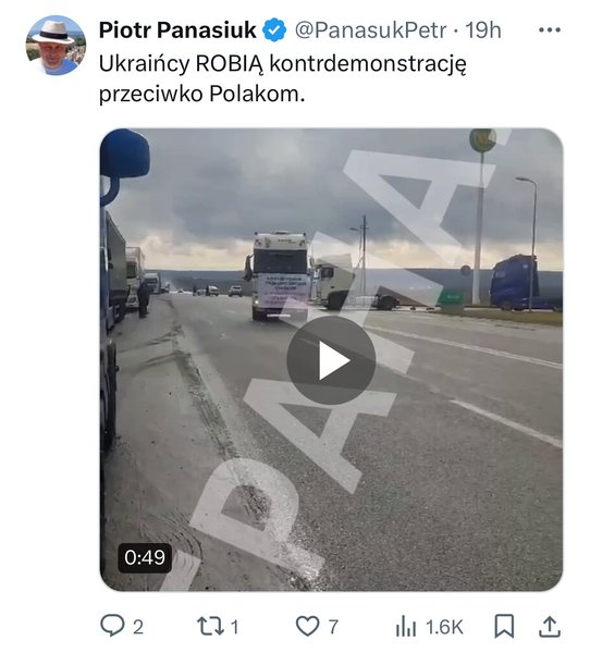Пізніше міністр внутрішніх справ Марцін Кервінський повідомив, що поліція Польщі могла затримати фермера, який блокував український кордон з плакатом зі зверненням до президента Росії Володимира Путіна.