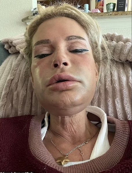 Темно-фіолетові синці з'явилися на її шиї та підборідді та поширилися по її обличчю, щогодини погіршуючись, досягнувши навіть її очей. Зараз, коли через два тижні синці та набряки значно зменшилися, мати трьох дітей все одно рекомендувала б цю процедуру, оскільки вважає, що її сильні синці — "унікальний" випадок.