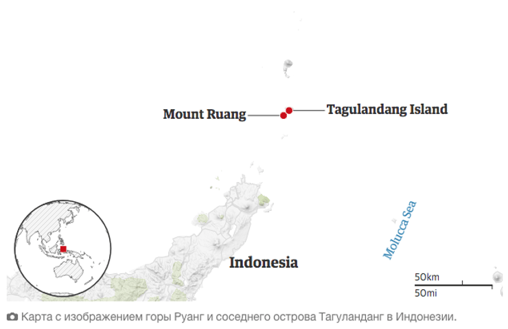 Повторне потужне виверження вулкана Руанг в Індонезії розпочалося у вівторок, 30 квітня, а 1 травня попіл піднявся на висоту понад 5 кілометрів, що стало підставою для вжиття владою жорстких заходів, включно з евакуацією людей з острова Тагуланданг. Про це повідомило Національне агентство з боротьби зі стихійними лихами Індонезії (BNPB).