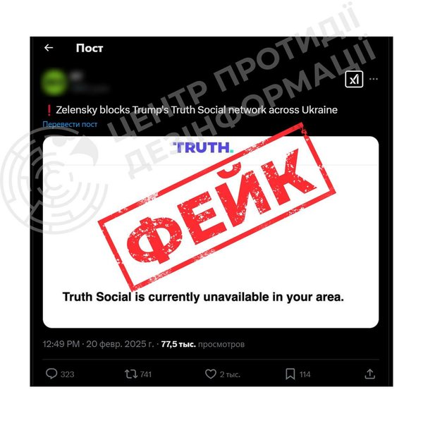 В ЗМІ з'явилась інформація щодо блокування Truth Social. В ЦПД назвали цю інформацію фейком, а в МЗС зазначили, що соцмережа доступна лише в деяких країнах.