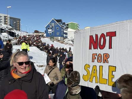 Близько 1000 гренландців під гаслом "Гренландія належить гренландському народу" вийшли на марш у столиці країни Нууке, протестуючи проти висловлювань президента США Дональда Трампа про суверенітет їхньої країни.