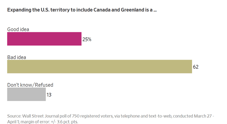 Відповідні результати показало опитування Wall Street Journal. Лише 25% опитаних вважають це гарною ідеєю, яка нібито зміцнить національну безпеку й економіку.