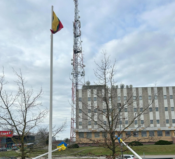 У місті Мажейкяй, Литва, невідомі скоїли акт вандалізму, поваливши та зламавши флагштоки з українськими прапорами.