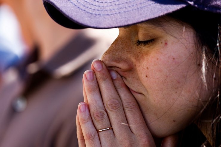 Під час євхаристійної молитви, яку проводив кардинал, багато хто витирав сльози, що текли по щоках.