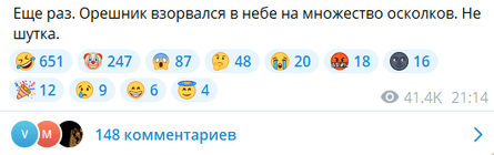 "Орешник вибухнув в небі на безліч осколків. Не жарт", — пише Alex Parker Returns.