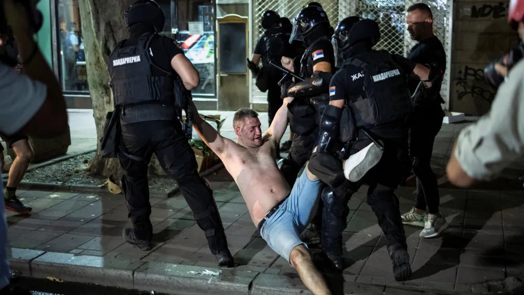 Після завершення протесту відбулися сутички між поліцією та протестувальниками, які кидали пляшки, каміння та фаєри в поліцію. Вони закликали правоохоронців припинити втручатись у протести проти влади Вучича і вигукували до них "Опустіть щити".