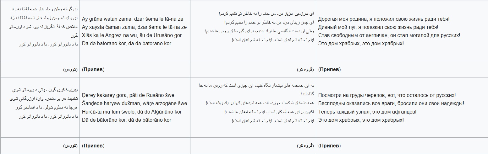 Річ у тім, що третій і четвертий куплети гімну, затвердженого керівництвом "Талібану", містять такі фрази, як "він став могилою для росіян!" (мається на увазі Афганістан), а також "Подивися на купи черепів, ось, що залишилося від росіян!".