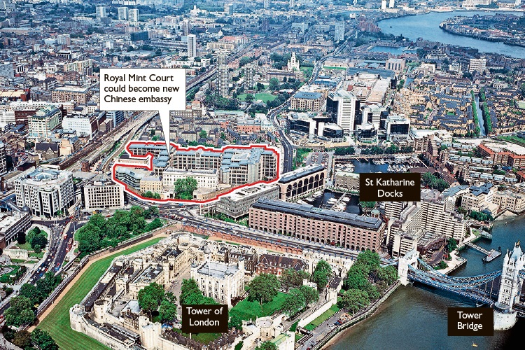 Нове посольство, якщо його побудують, розміститься навпроти Лондонського Тауера, у будівлі колишнього Королівського монетного двору, і стане найбільшим посольством Китаю в Європі.