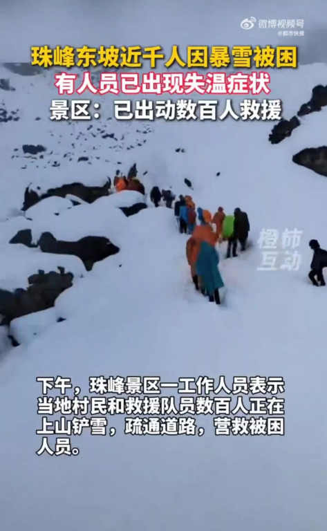 У матеріалі також зазначається, що деяких туристів уже евакуювали з гори. Снігопад розпочався ввечері в п’ятницю та тривав упродовж суботи, згідно з повідомленнями місцевої туристичної компанії Tingri County Tourism Company у китайській соцмережі WeChat.