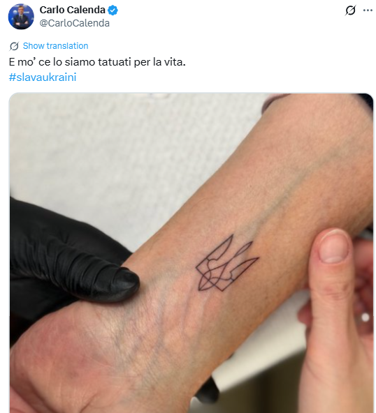 Італійський сенатор та лідер місцевої ліберальної партії "Дія" Карло Календа зробив собі татуювання з українською символікою, чим похизувався у соціальних мережах.