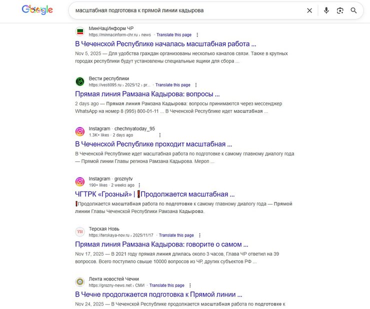 "Зліг наш падишах. Сподіваюся, і не встане. Шакали забігали, але скасовувати поки що не будуть нічого, просто переносять [пряму лінію]", — сказав один з анонімних співрозмовників, зазначивши, що у Кадирова зараз "загострення".