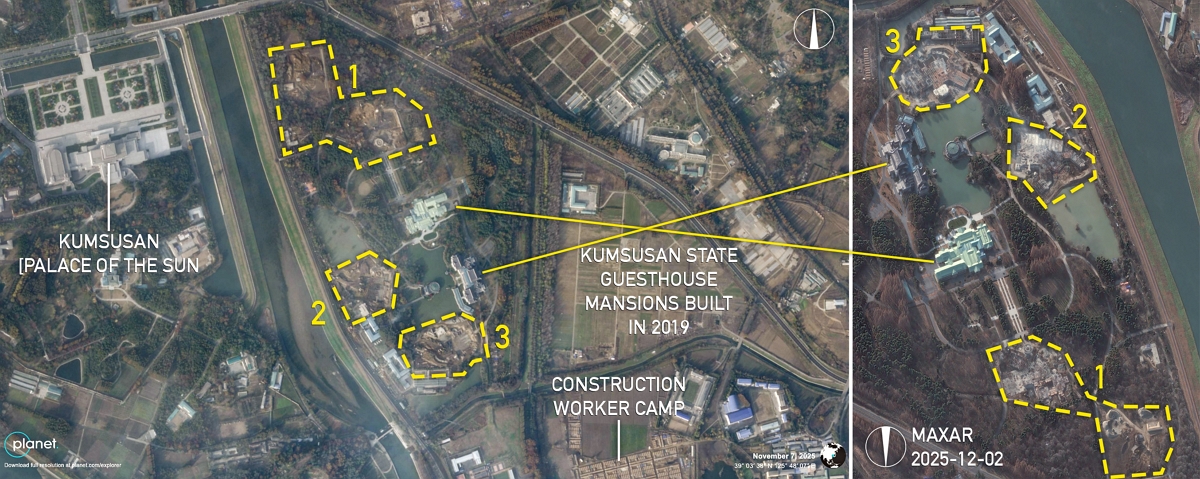 Північна Корея в терміновому порядку будує одразу три розкішні особняки на території гостьового комплексу Кимсусан у Пхеньяні. Кожен з особняків займає близько 13 000 кв. м. Аналіз супутникових знімків, проведений NK News, показує, що об'єкти готують для приймання високопоставлених іноземних лідерів уже найближчими місяцями.
