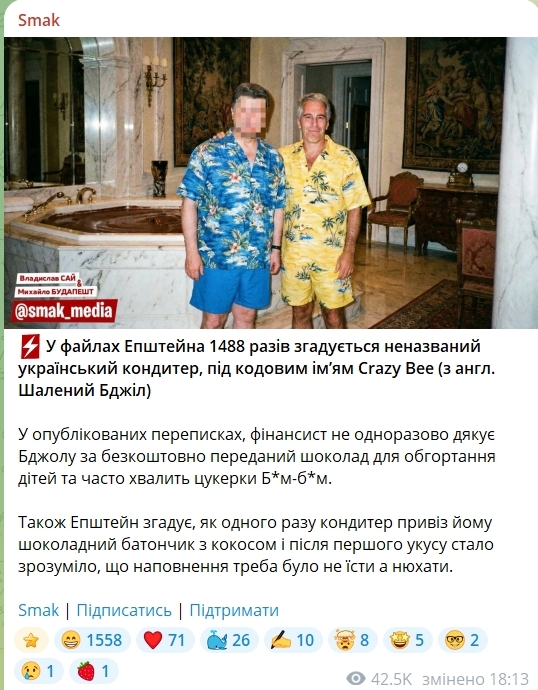 "Кондитер Шалений Бджіл": китайські соцмережі підхопили фейк про Епштейна та Порошенка (фото)