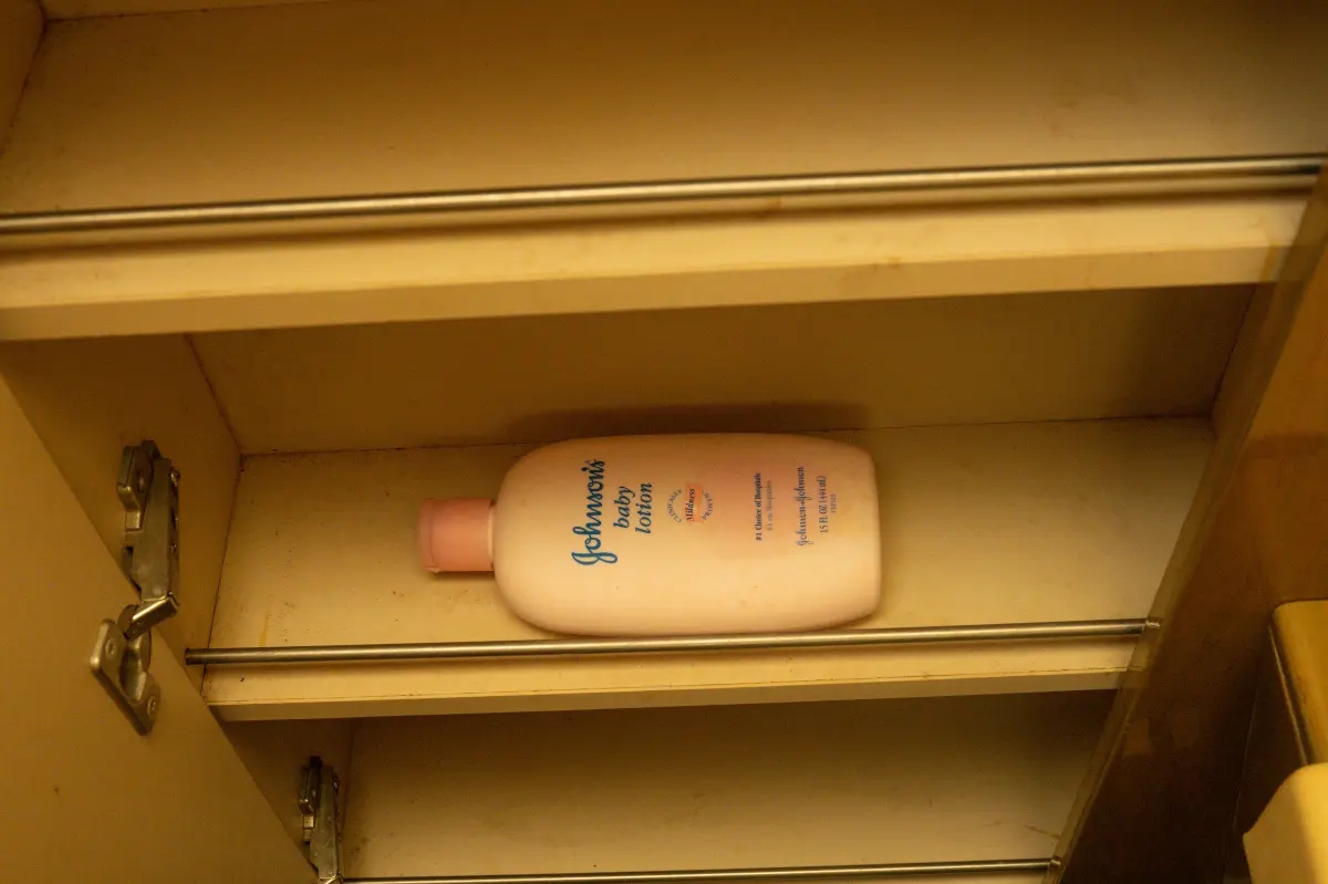 Під час екскурсії салоном літака, в якому навіть підлога була оббита м'яким матеріалом, серед запліснявілих баночок з-під крему для гоління, використаних зубних щіток і помаранчево-жовтих гумок для волосся, кореспондент виявив у ванних шафах дитячий лосьйон і присипку.