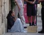 Журналісти помітили, що "жебраки" вдягнені у дизайнерський одяг, який знімають до початку "робочого" дня.