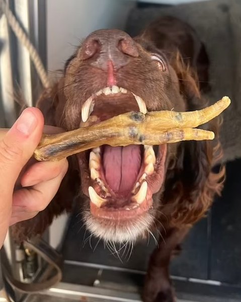 Собака, якого вважають високоповажним офіцером поліції, в нагороду отримав смачну курячу лапку.