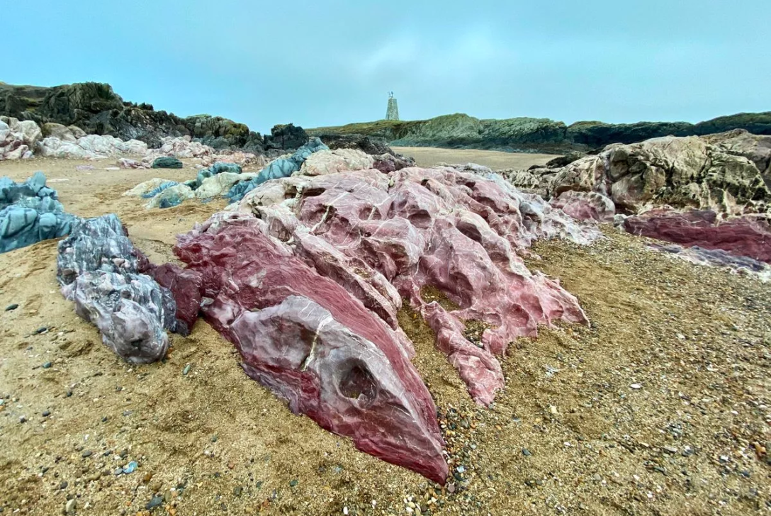 Як повідомляє North Wales Live, "червоний дракон" на острові Англсі — це незвичайне скупчення червоних скель, яке можна побачити тільки під час відливу. Спочатку його помітив пильний фотограф Ноель Морган, який зробив знімок драконоподібного утворення 2022 року.