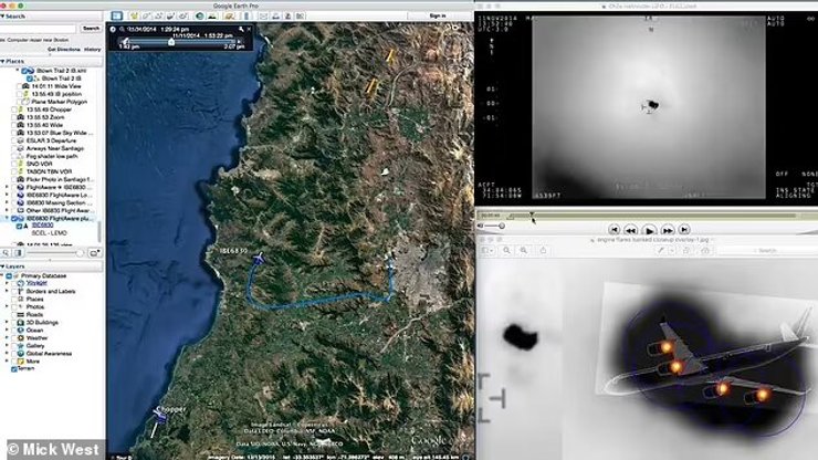 Він думав, що це просто ще один літак, і такий висновок він мав би рацію, але виявив, що йому потрібно особисто дослідити це питання.Тож розвінчувач міфів використав Photoshop, щоб уважно розглянути зображення, і завантажив GPS-маршрути зі свого літака та кількох інших у цьому районі з FlightAware.com.