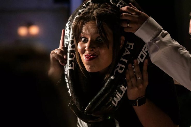 Десятки охочих взяли участь у заході, який є частиною крабового ярмарку в Егремонті, на якому також проводяться перегони на тачках і змагання з рогів. Учасники змагання намагаються витягнути якомога гротескніше обличчя, одягаючи великий кінський хомут.