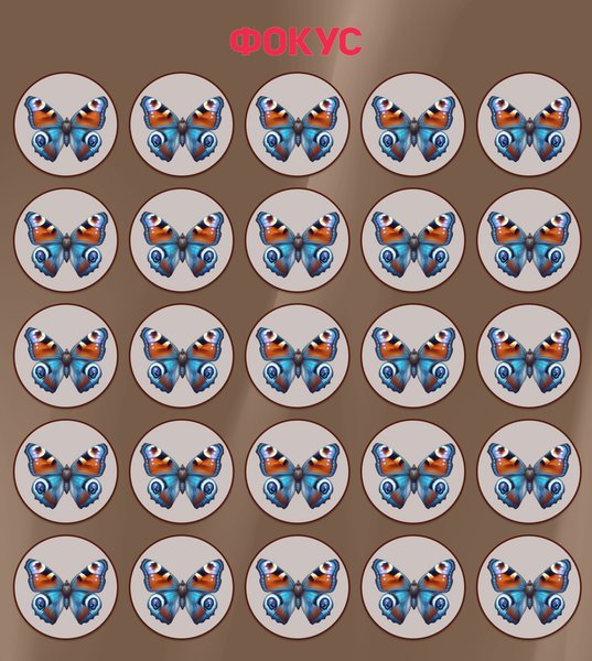 Розв’язання каверзних головоломок — один з найкращих способів тренувати пам'ять та когнітивні функції мозку. Фокус пропонує вашій увазі нову каверзну загадку з метеликами. Все, що потрібно — знайти один екземпляр, який відрізняється від усіх інших, послідовно розташованих у п’яти рядках. У вас орлине око, якщо впораєтесь з цим складним викликом швидше, аніж за 40 секунд. Час пішов!