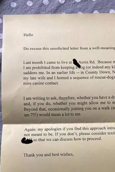 Самотній пенсіонер зворушив листом до сусідів про прогулянки з людьми і їхніми собаками (фото)