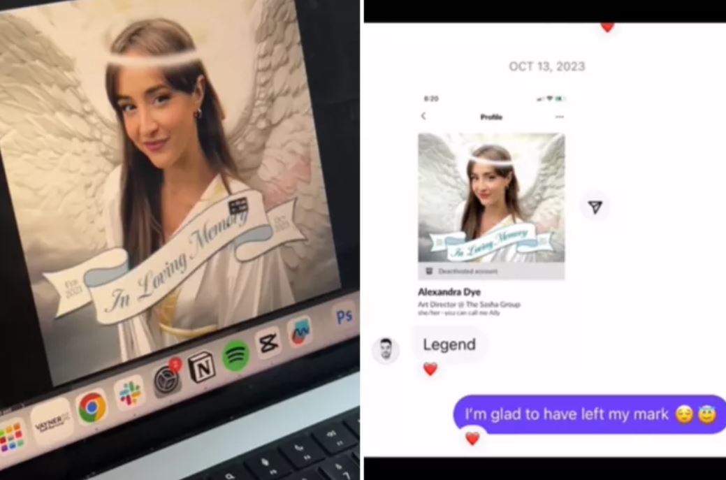28-річна Александра Дай із США, яка працювала артдиректоркою у рекламному агентстві, у свій останній робочий день вирішила зробити несподіваний жест, щоб запам’ятатися колегам. Жінка змінила свою фотографію в мережі Slack на смішний колаж з німбом. Її відео, опубліковане у TikTok, стало вірусним і швидко зібрало понад 1,9 мільйона переглядів.