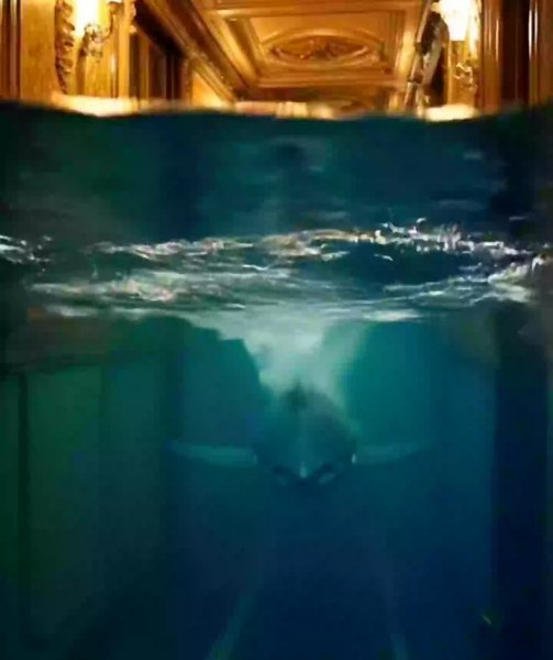 Ще одна дивна деталь — пасажири першого класу заходять у ліфт, наповнений водою, а сам головний герой занурюється в бурхливий потік, зустрічаючи... акулу. Цей елемент викликав у глядачів найбільше здивування. Утім, це не єдиний сюрреалістичний момент: музиканти "Титаніка", які продовжували грати до самого кінця, раптом опиняються оповиті таємничим серпанком, а один із них помилково використовує смичок замість труби.