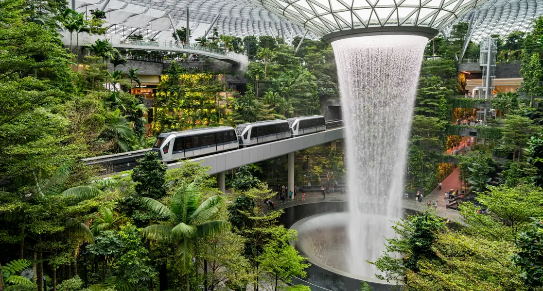 Сінгапурський аеропорт Чангі, найкращий у світі аеропорт, аеропорт майбутнього, критий водоспад, туристична пам'ятка