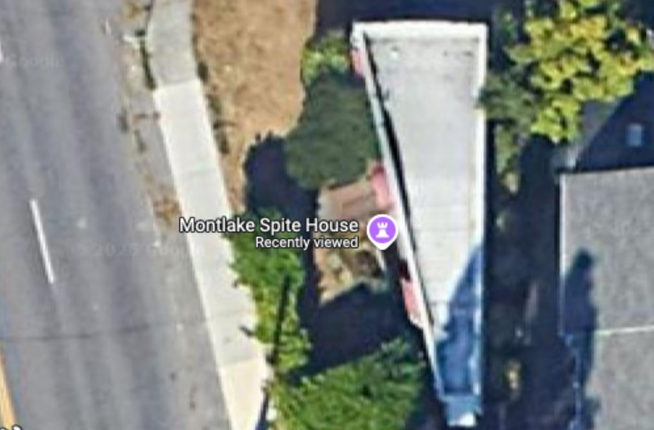 Будинок отримав своє прізвисько, Montlake Spite House, саме за те, що був побудований "на зло". Його клиноподібна форма нагадує краплю, затиснуту між двома ділянками. Попри скромну площу, 860 квадратних футів, усередині помістилися дві спальні, дві ванні кімнати, кухня, вітальня і навіть окремий вхід для орендарів.