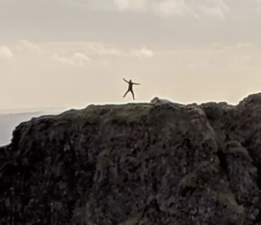 Чоловік, що знаходиться вдалині на скелі, опинився в кадрі в класичній "зоряній позі", розкинувши руки і ноги. Фото одразу ж охрестили "найдальшою фотобомбою в історії", зазначивши, що подібне "трапляється лише один раз на мільйон".