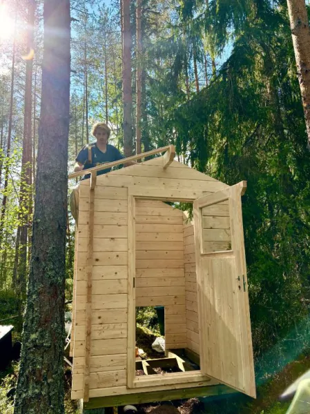 Вони вручну вирубали дерева для першого каркаса. З підручних матеріалів побудували найпростішу надвірну споруду, пізніше з'явився і туалет.