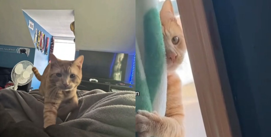 У вірусному відео, що набрало вже 8,4 мільйона переглядів, видно, як шторка ледь помітно колишеться, а потім з-за неї з'являється пухнаста лапа. Повільно, майже по-детективному, вона відсуває тканину, відкриваючи уважний, майже підозрілий погляд кота.