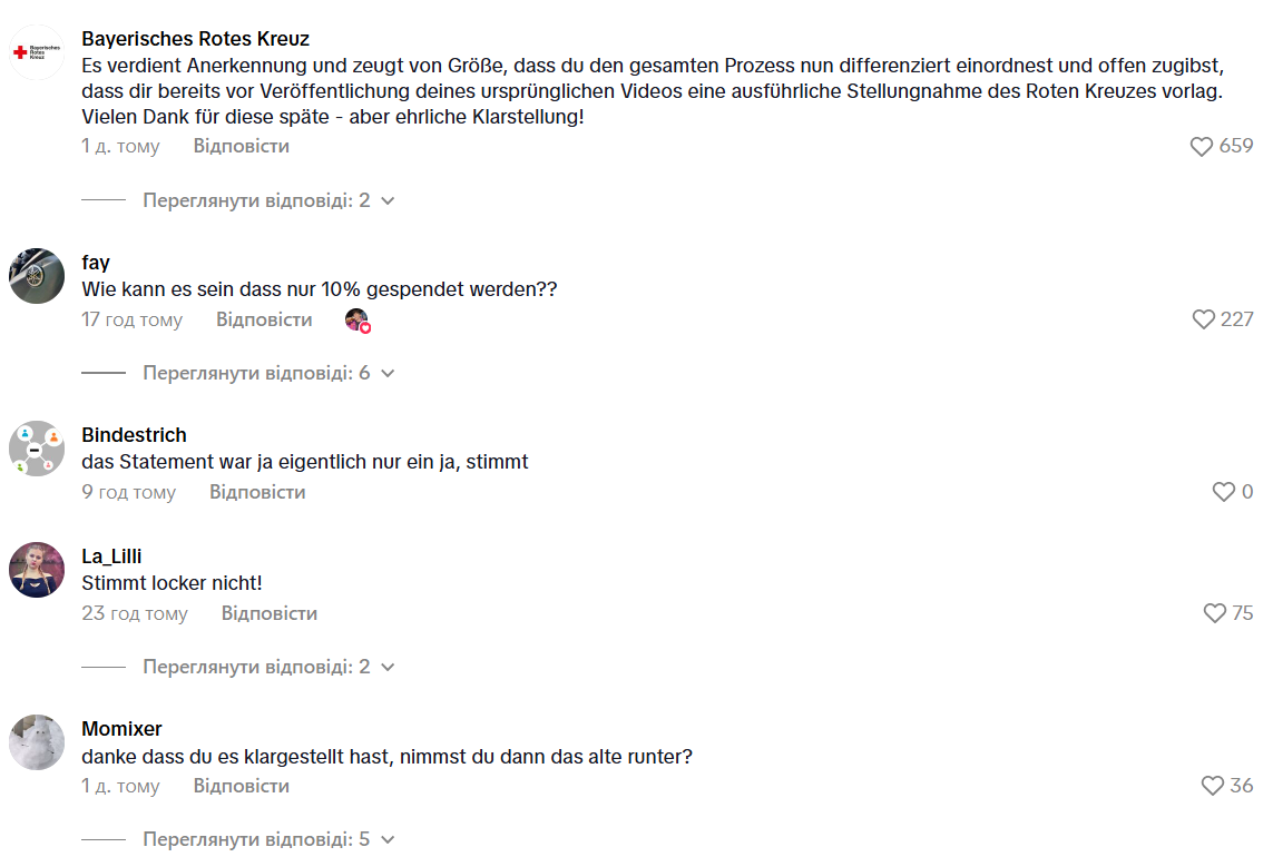Відео спричинило хвилю обурення серед користувачів TikTok. Багато людей почувалися ошуканими. "Червоний Хрест", своєю чергою, швидко відреагував на критику, опублікувавши заяву у TikTok. Організація пояснила систему роботи з пожертвуваним одягу.