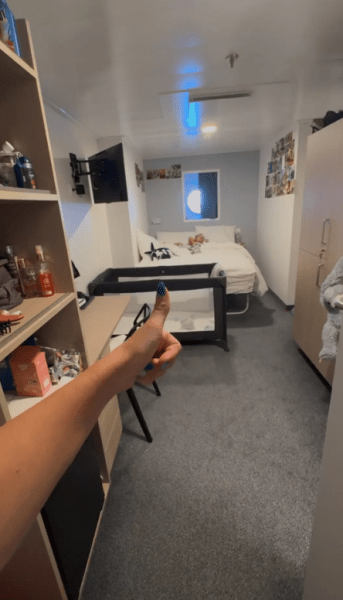 Їхнім житлом у морі є стандартна офіцерська каюта, але Челсі називає її "зручною і продуманою". У душі стоїть складна надувна ванночка для Маттіа, шафа акуратно укомплектована підгузками і вологими серветками. Незважаючи на компактність, мама щаслива, що може навести порядок і створити затишок навіть далеко від дому.