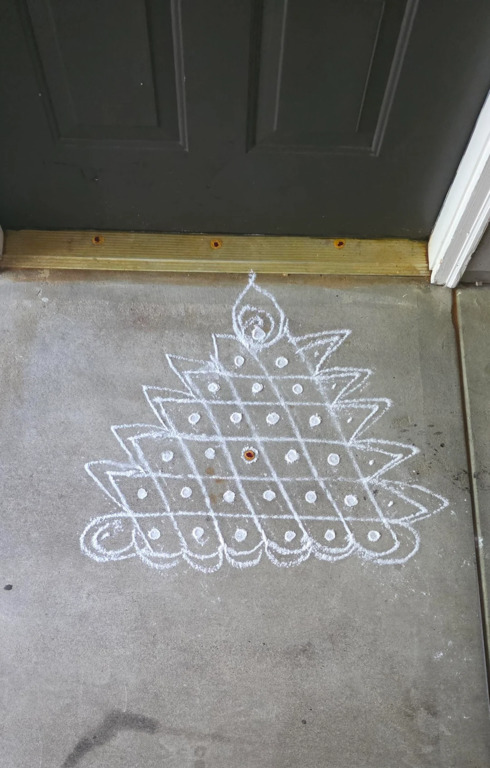Коментатори швидко пояснили: перед ними — колам. Це традиційне мистецтво з Південної Індії, зокрема зі штату Тамілнад. Його створюють рисовою пудрою або крейдою, починаючи з точок (пуллі), з'єднаних у геометричні візерунки. Ці малюнки символізують позитив, удачу та красу, а також виконують роль щоденного духовного ритуалу.