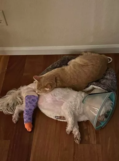 Собака зламала лапу: власники були приголомшені, коли побачили, що тепер робить кіт (фото)