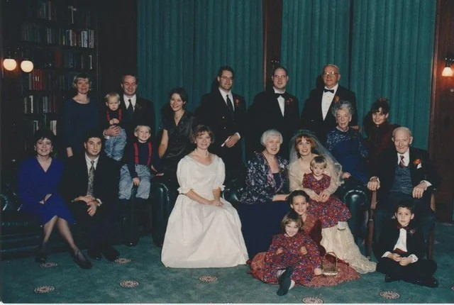 На оприлюднених світлинах можна побачити, як у кадрі видно жінку в довгій білій сукні з пишними рукавами — дуже схожій на весільну — яка сидить у центрі серед 19 родичів. Але це була не наречена — це була її своячка, тоді як справжня наречена сиділа ліворуч від неї, у фаті та мереживній сукні кольору слонової кістки, яка була майже повністю закрита дитиною на її колінах. Ще двоє дітей сиділи на підлозі біля її ніг.