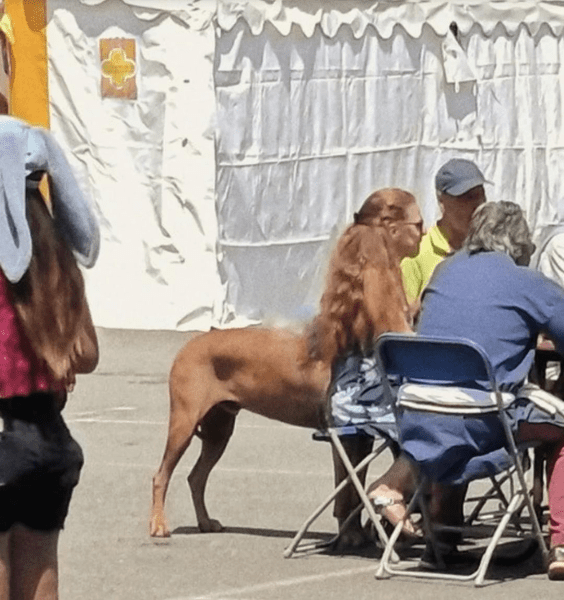 На фото помітна руда жінка, яка сидить поруч із друзями, однак згодом там з'являється собака, яка опиняться поруч з гостями закладу. Саме в цей момент було зроблено знімок, коли й виникла відповідна оптична ілюзія.
